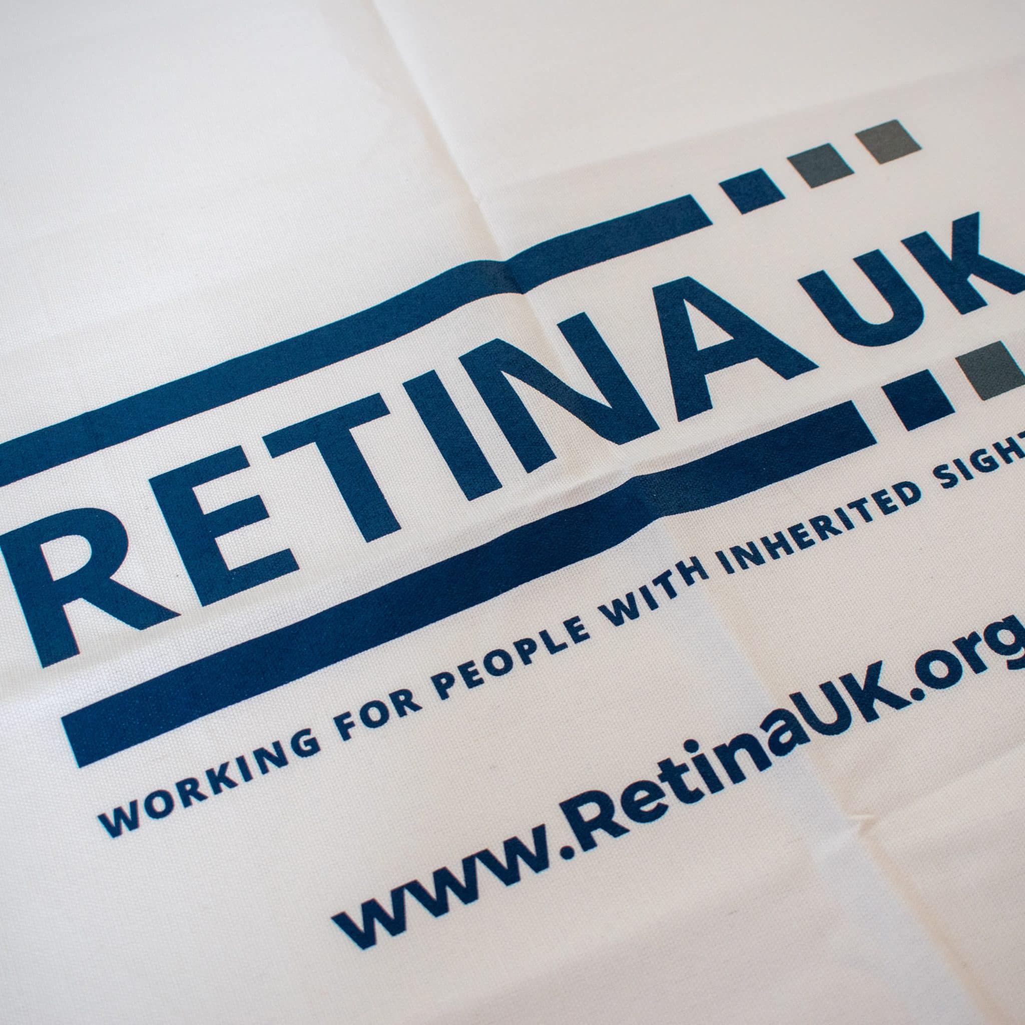A white tea towel with the Retina UK logo, website and charity number. 100% heavyweight cotton with a hemmed edge.
